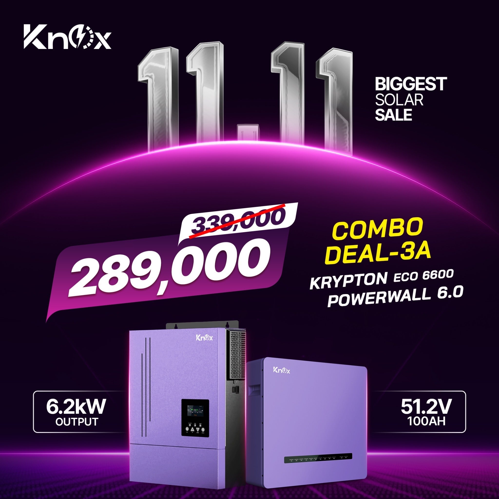 The Knox Combo Deal 3A provides a complete, high-capacity solar power solution designed for modern homes and commercial setups. It combines the Krypton ECO 6600 6.2kW Hybrid Solar Inverter with the Powerwall 6.0 51.2V 100Ah Lithium Battery, offering exceptional performance, efficiency, and long-lasting reliability for sustainable energy needs.