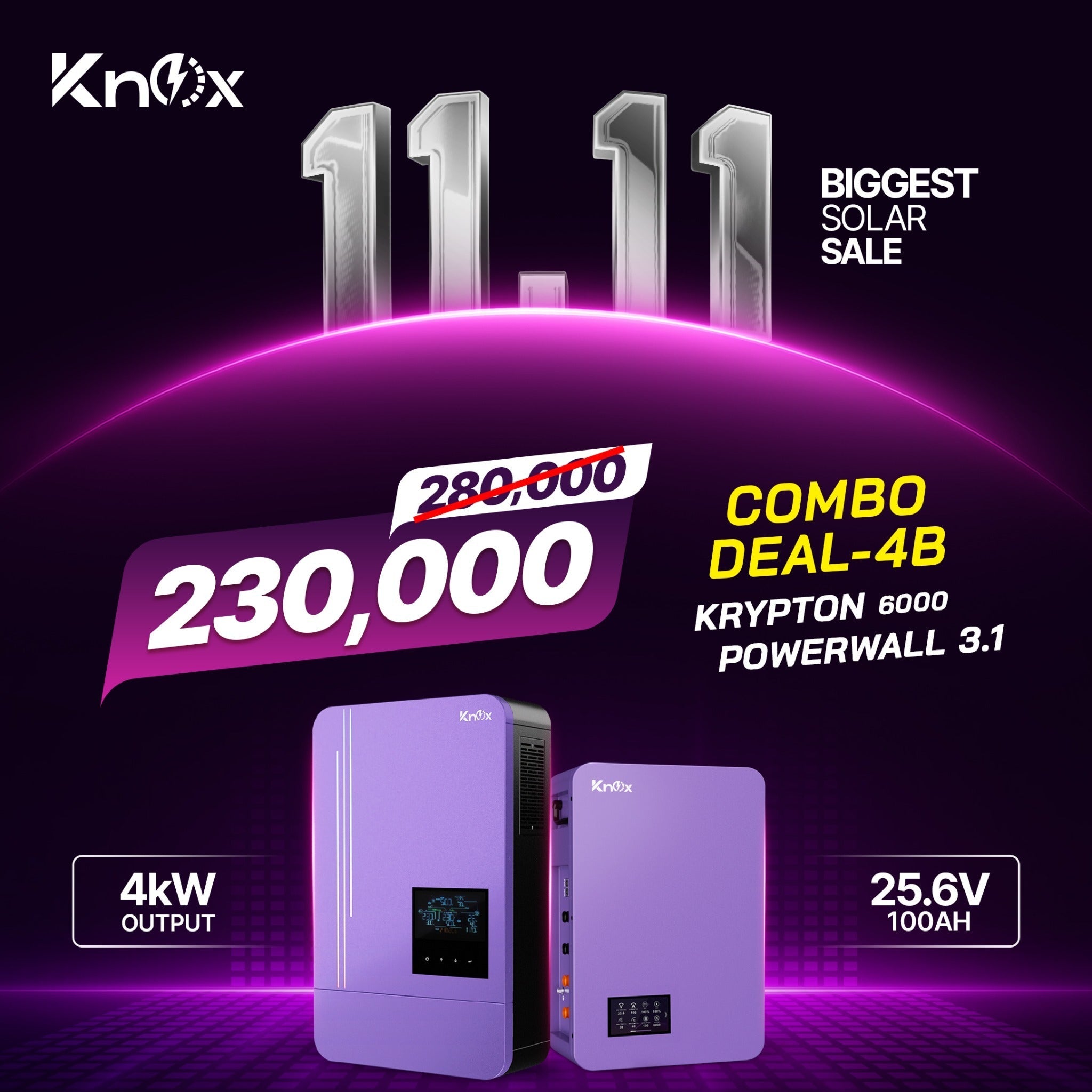 The Knox Combo Deal 4B delivers a complete and efficient solar energy solution, combining the Krypton 6000 4kW Hybrid Solar Inverter with the Powerwall 3.1 25.6V 100Ah Lithium Battery. Designed for high performance, reliability, and long-term energy savings, this combo is ideal for residential and small commercial applications.