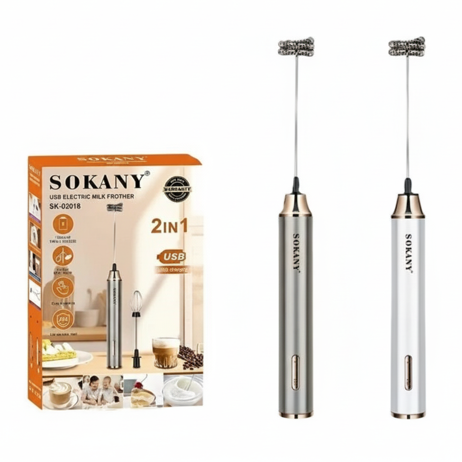 2-in-1 Frother with Double Whisk Heads – Includes interchangeable whisk options for latte, cappuccino, matcha, and more.