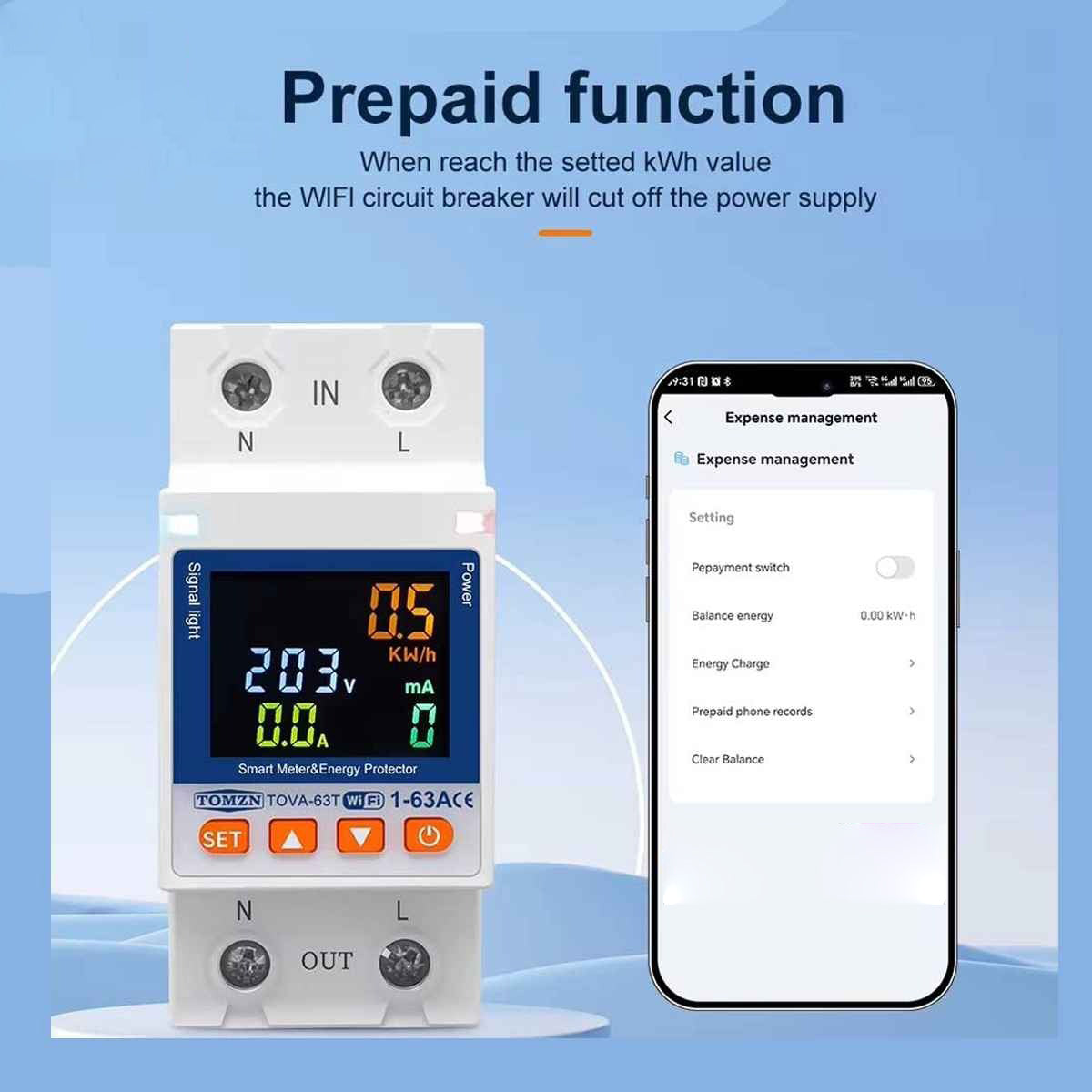 With its prepaid functionality, you can easily manage power consumption and promote efficient energy use. The energy-efficient design consumes less than 2W, ensuring reliable performance with minimal energy waste. Featuring adjustable under/over voltage, overcurrent, leakage, and temperature protection, this breaker provides comprehensive safety and stability for your connected systems.