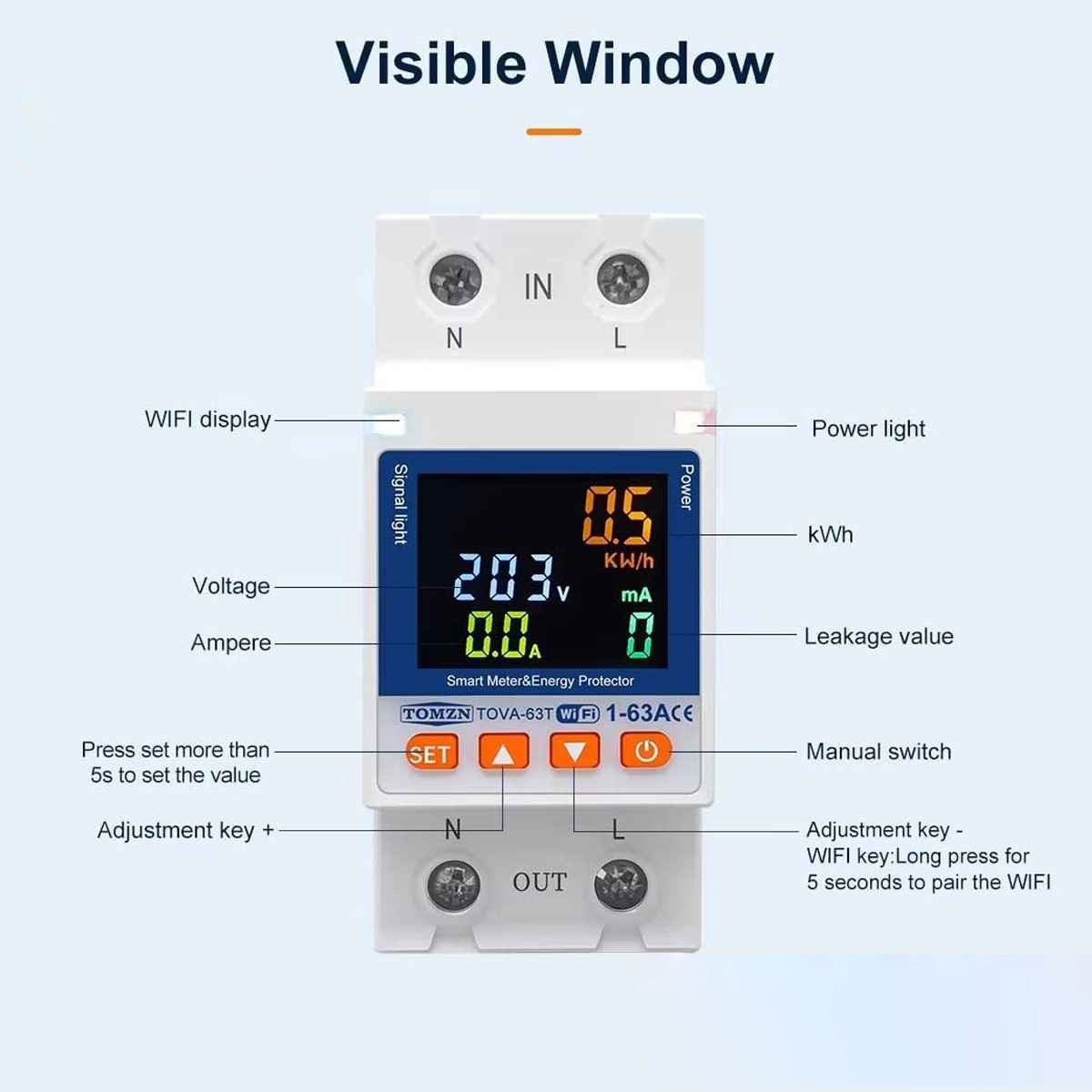The Tomzn TOVA-63T 63A WiFi Protector Mini 10-in-1 is a powerful and intelligent circuit protection device designed to give you full control over your power system. Integrated with the SmartLife and Tuya apps, it allows you to remotely switch power ON/OFF, monitor energy usage in real time, and manage multiple protection settings from anywhere.