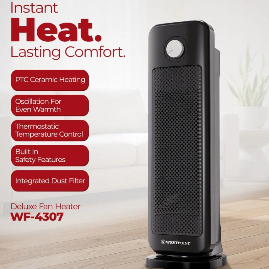 Experience efficient and reliable heating with the Westpoint WF-4307 PTC Ceramic Fan Heater, designed to keep your space warm, comfortable, and safe throughout the winter season. Featuring adjustable heating modes, oscillation, thermostat control, and enhanced safety features, this heater delivers high performance with user-friendly operation.